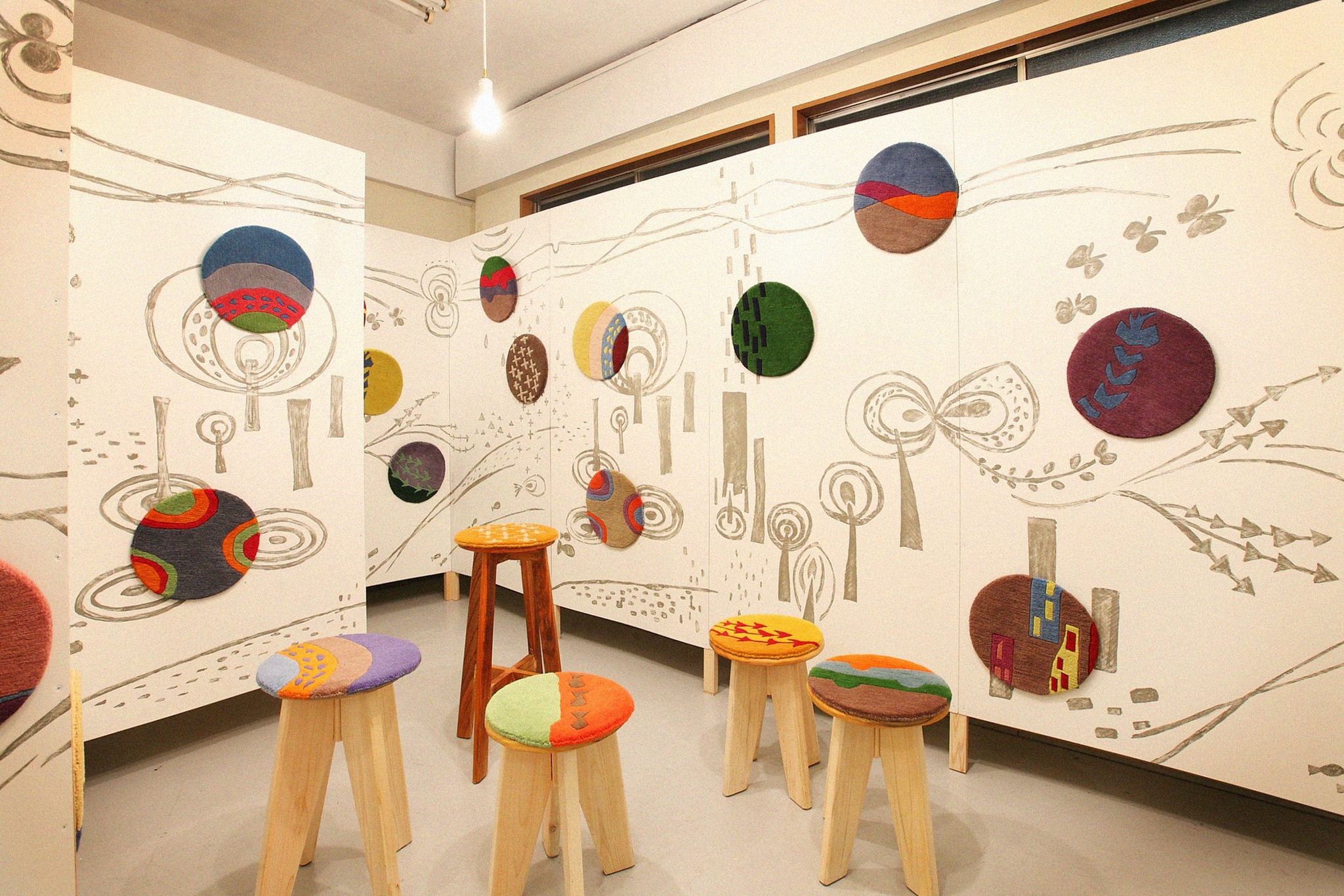 商業印刷物のデザインやイラストの仕事をするかたわら、あたたかみのある手織りのネパール絨毯やカーペットデザインもたびたび手がけており、2013年10月に初個展『DOTMAT展』を開催。