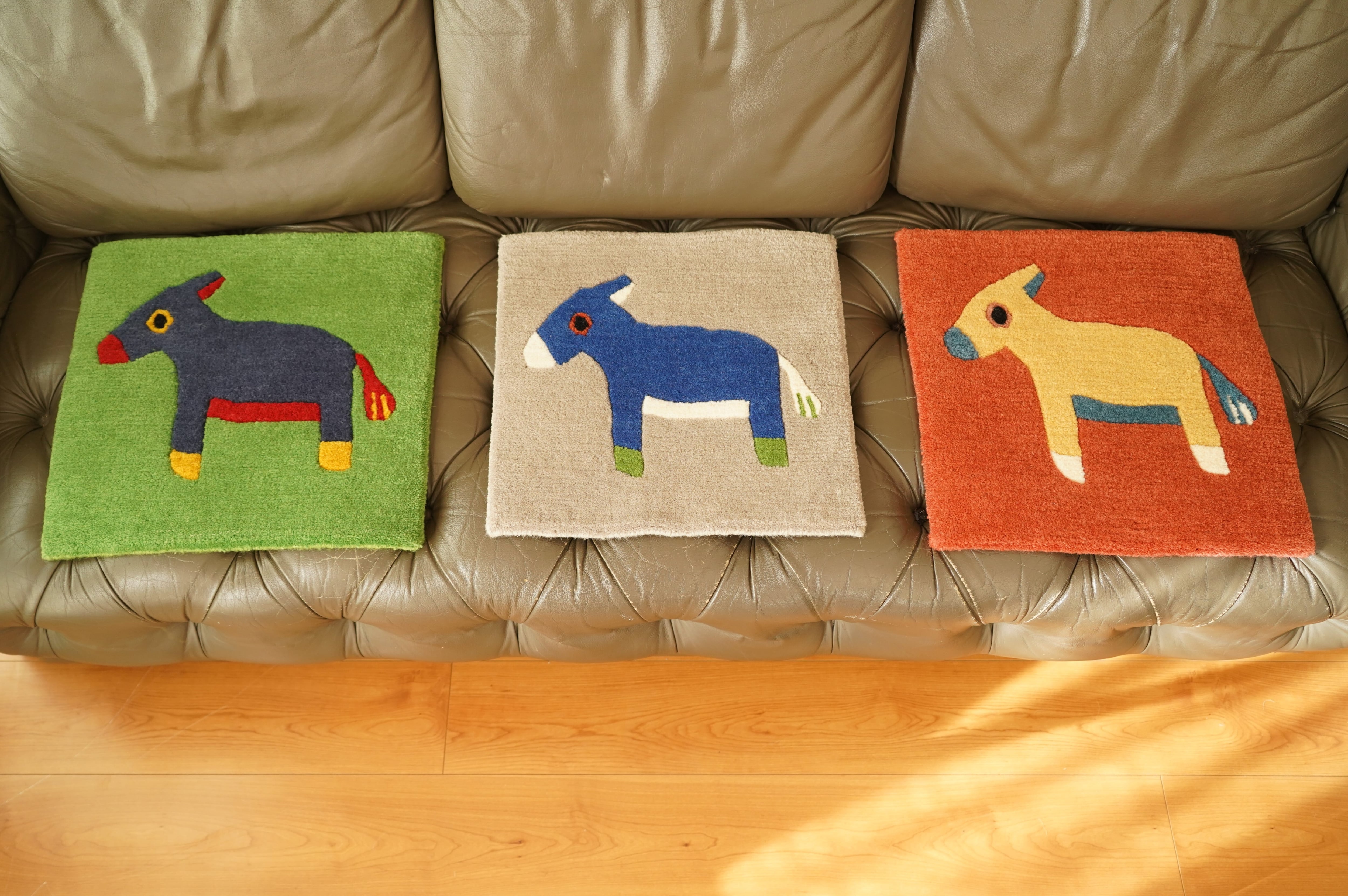 ヒマラヤのラバをモチーフにしたカラフルなチェアパッド。