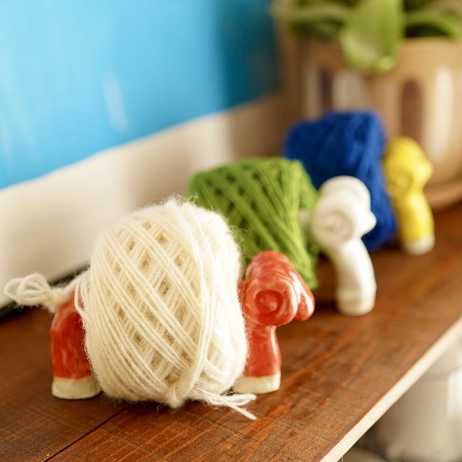 インテリアとして楽しむだけでなく、毛糸の糸巻きとしても使える実用性を兼ね備えています。