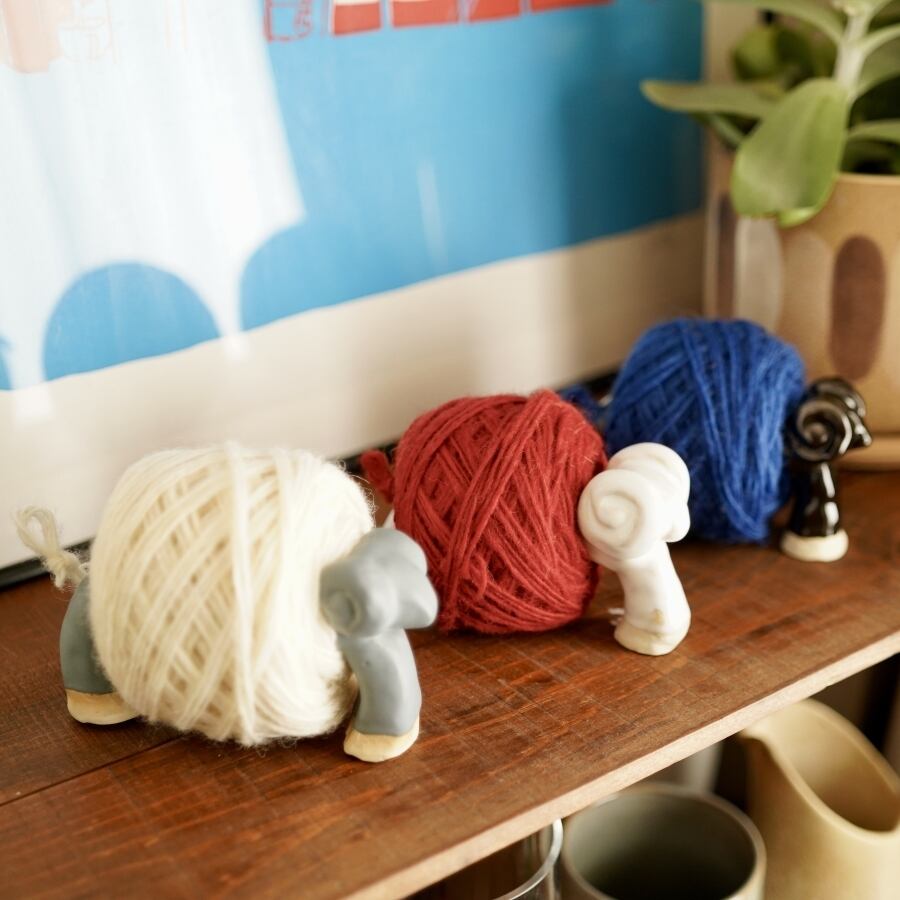 インテリアとして楽しむだけでなく、毛糸の糸巻きとしても使える実用性を兼ね備えています。