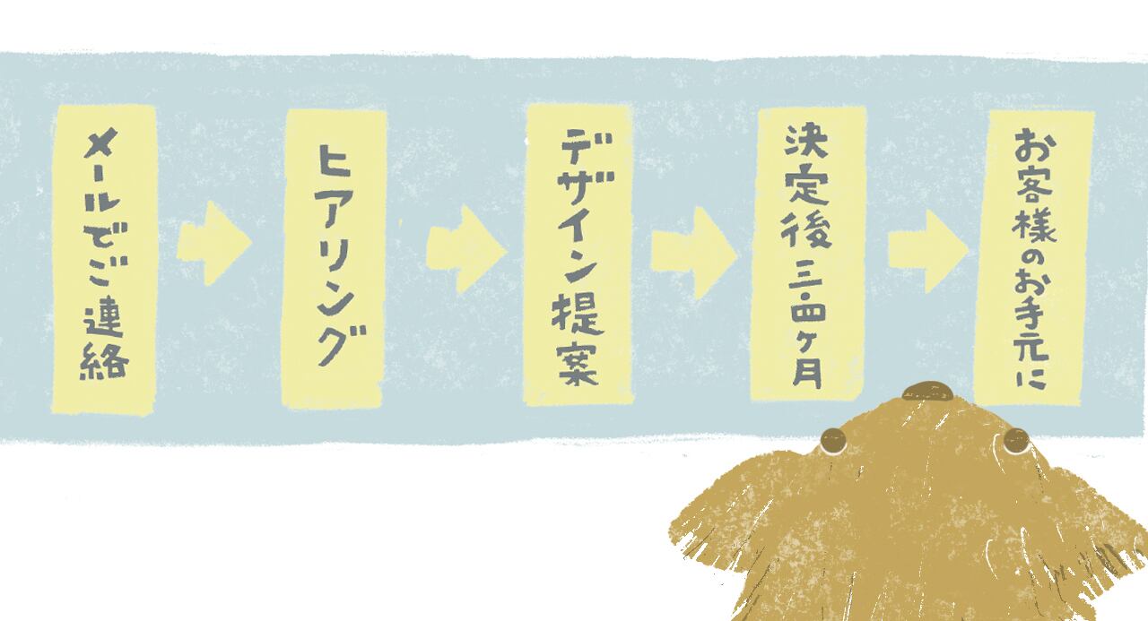 ⾊やサイズ、デザインなどご希望の内容をヒアリングさせていただきます。